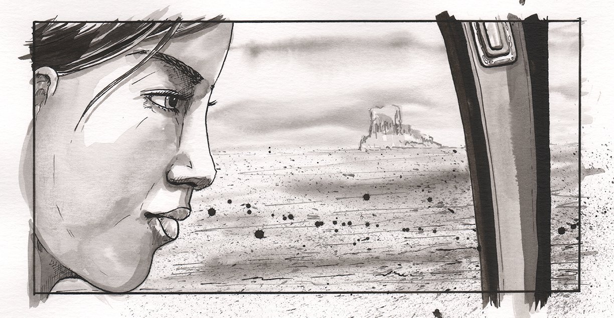 An internal illustration of a character in the graphic novel, The Weapon by Matt Buckett.